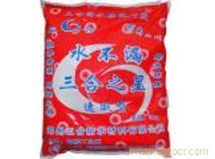 三、使用方法: 1. 首先把漏水点或漏水缝凿成垂直喇叭口,把杂物或疏松的粉状物清理干净,并用水湿润。 2. 将一公斤速效堵漏剂放入锅内或其它的搅拌容器内,加入0.3~0.35公斤水,迅速搅和成浆体。低 于5oC时,宜用20oC以上的水搅拌。 3. 把拌好的堵漏胶泥放在手上,感到胶泥发热稍微发硬时,迅速迎漏水方向压下,持续一定时间才 可松手,一般在10分钟内可把水堵住。 4. 堵水后,再用防水砂浆抹面,表面养护7天即可。 5. 对于渗水坑,可直接把快速堵漏剂干粉投入坑内,然后用脚踩住,待硬化后才可松脚。 6. 对于严重漏水缝,采用引流方法,先堵上缝,后堵下缝,最后堵引流孔。 7. 对于大面积渗漏,要找出漏水点,先用速效堵漏剂堵住,然后用防水砂浆抹面。 四、包装: 塑料袋包装,每袋净重50kg 五、储存:必须在干燥环境下密封储存,保质期六个月,开袋后一次用完